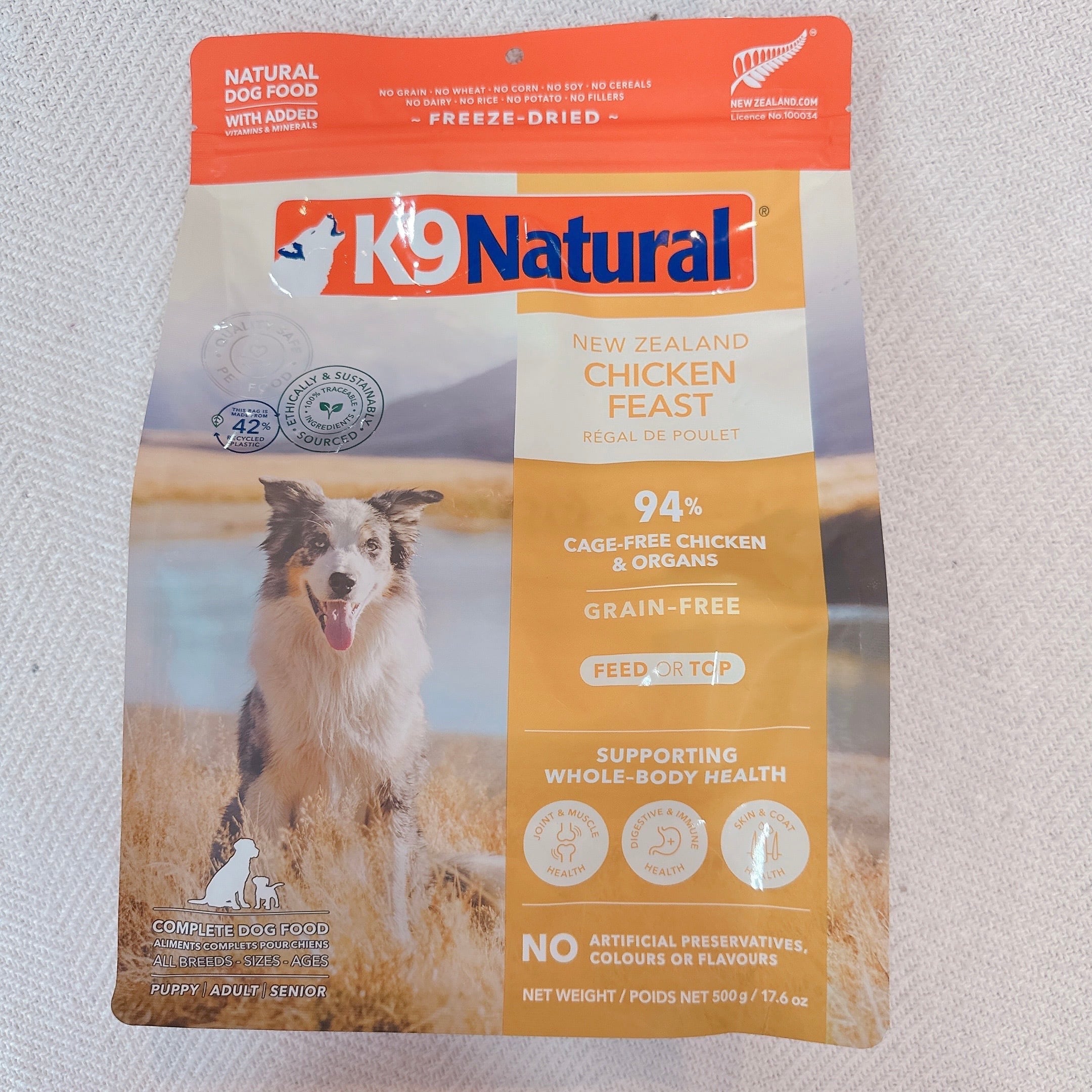 K9ナチュラルは、原材料の99%以上に自然食材を使用し、その栄養や風味を最大限に生かすため、原材料の加工・加熱を最小限に抑えた特殊なフリーズドライ製法を採用しています。そのため、原材料の収穫時期やサプライヤー(供給元)の違い、季節による家畜・家禽の脂肪分の違い、気候による野菜・果物などの成分の違いなど、素材の特長がそのまま、粒に反映されるため、保証成分値の範囲内ではありますが、粒の形状や、硬さ、色や香りなど、違いがあります。また、一般的なドライフードのように、肉食動物である犬にとって不要な、穀類・イモ類・豆類などの、粘性の高いツナギや量増しとしての原材料を一切使用していないため、1粒1粒が柔らかく、簡単に、ほぐせるようになっています。 K9ナチュラルは、基本的な与え方として、本来の食事に近づけるために、生食の水分値に戻してから与えていただくフードですので、粉状になっているものはそのまま、粒状のものはくずしてから、水かぬるま湯(37℃以下)を加えると、短い時間で、戻ります。