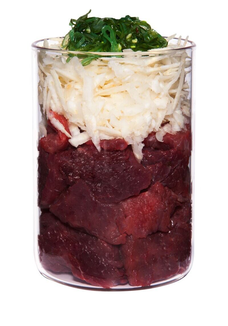 粗タンパク: 10,9% ·粗脂肪: 2,2% ·粗繊維: 0,6% ·粗灰分: 1,6% ·水分: 80,3%